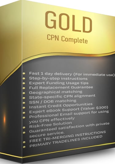 If you want to skip the manual process and demand a professionally prepared option, the $199.99 CPN Package includes everything you need: a professionally inspected and tri-merged CPN, ready for immediate use. This elite option opens doors to high-limit credit cards, favorable auto loan terms, and both personal and business funding opportunities.