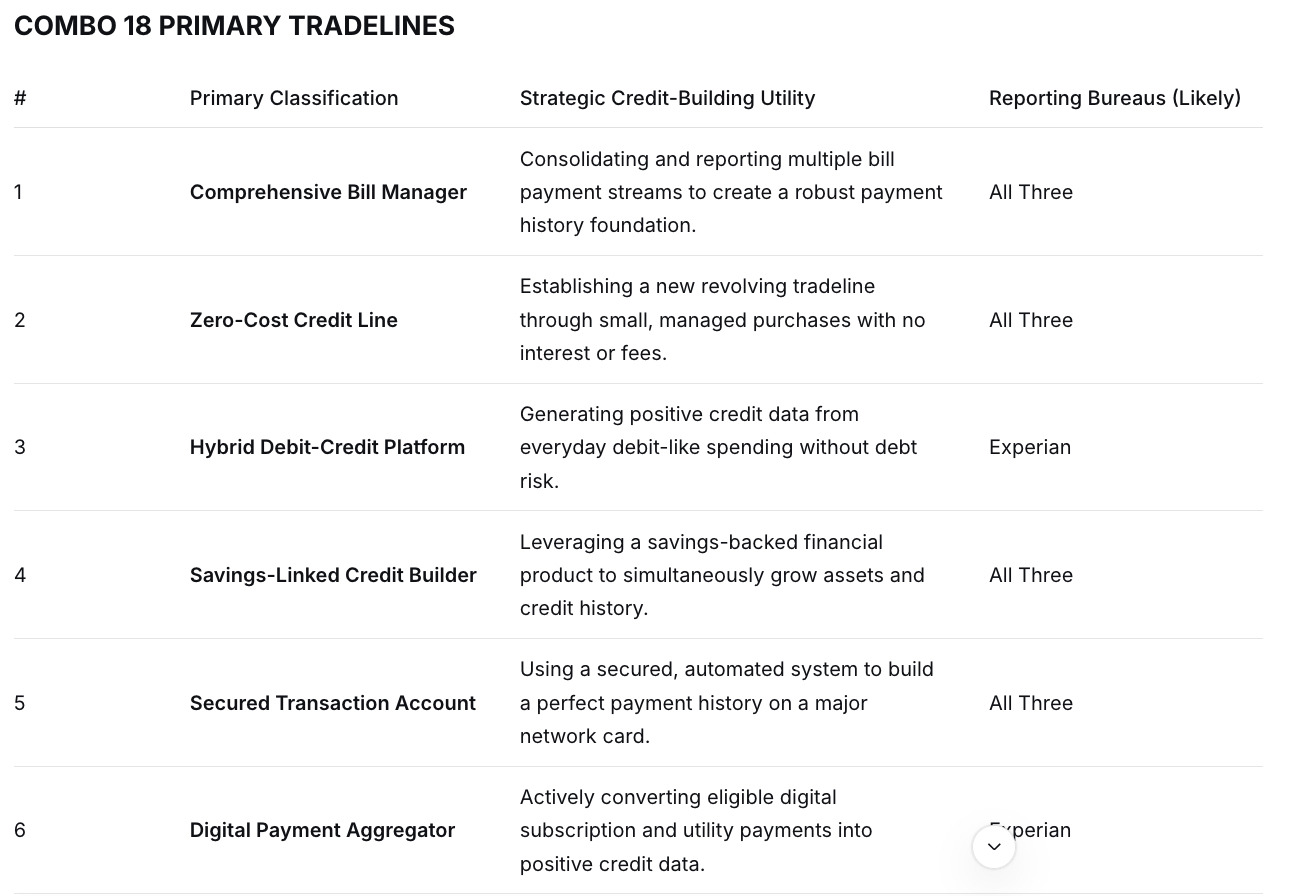 PRIMARY TRADELINE COMBO 18